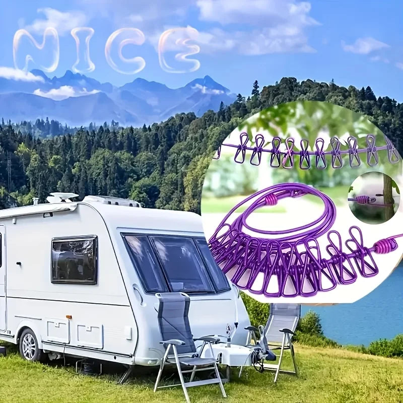 Portable Travel Clothesline with Clips